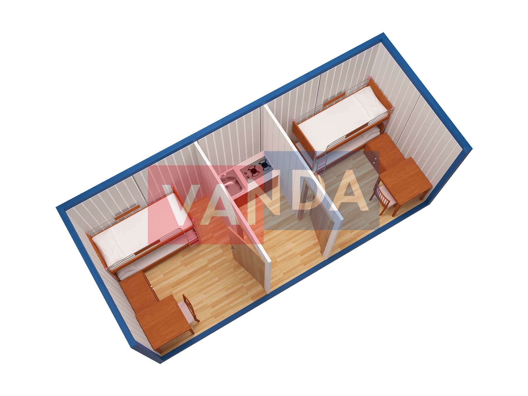 Металлическая бытовка распашонка 5,85 x 2,4 - Оргалит ДВП